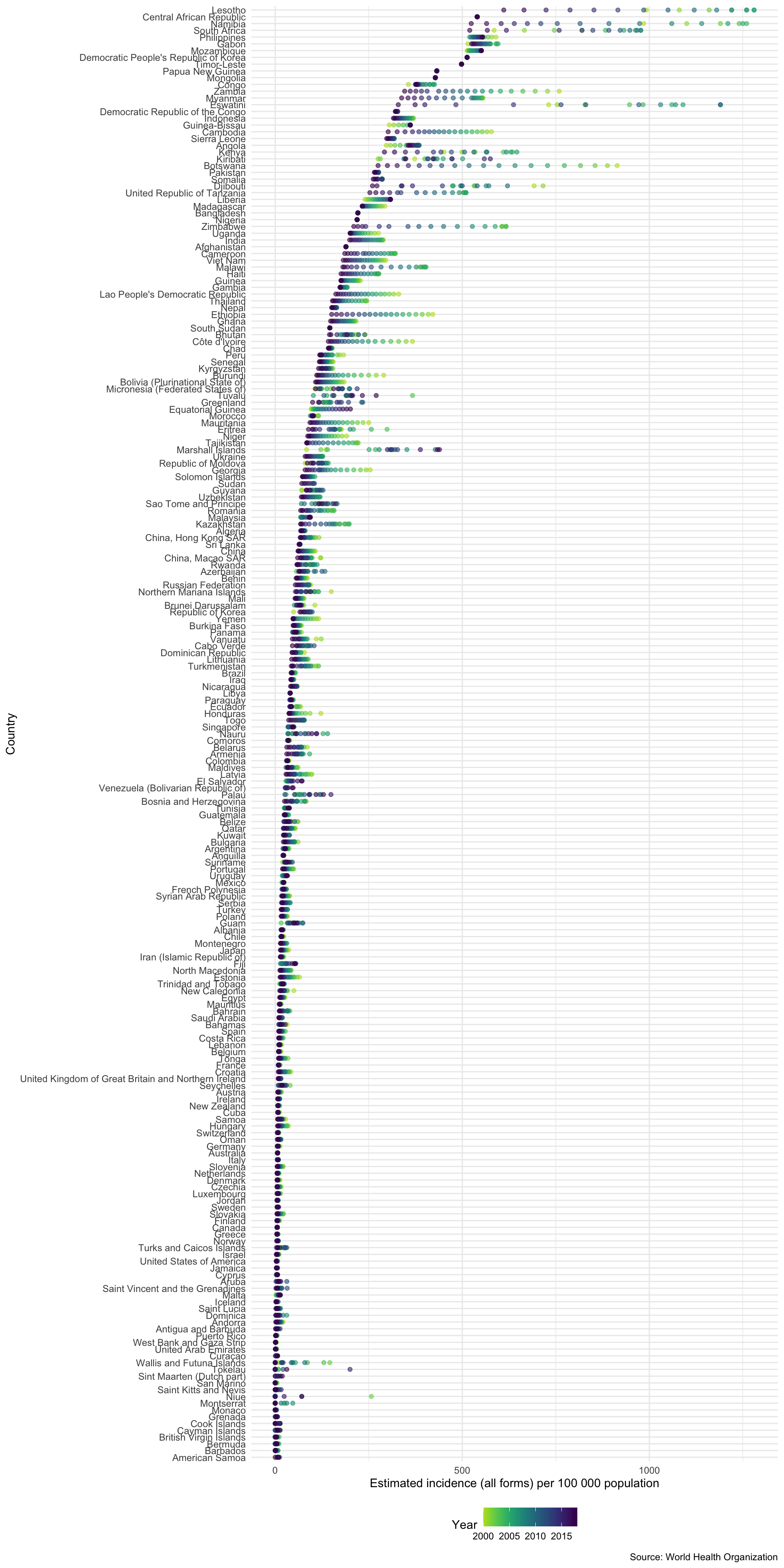| e_inc_100k | Estimates | Estimated incidence (all forms) per 100 000 population | |