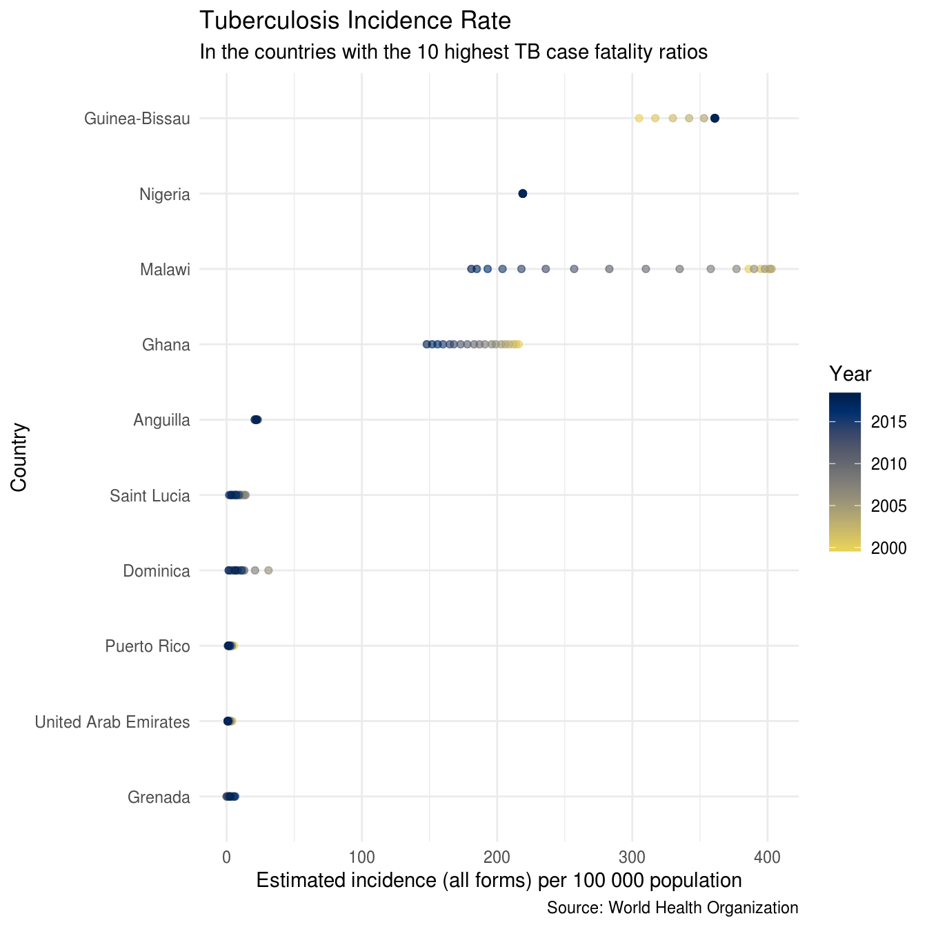 subtitle = "In the countries with the 10 highest TB case fatality ratios")